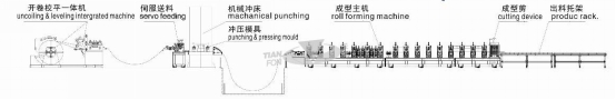 开卷→校平伺服送料→冲孔→成型→切断→出料